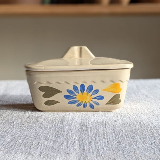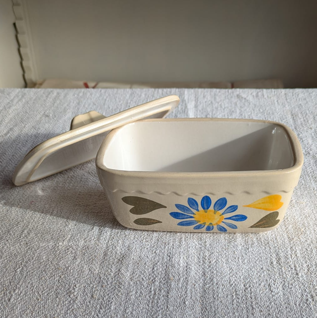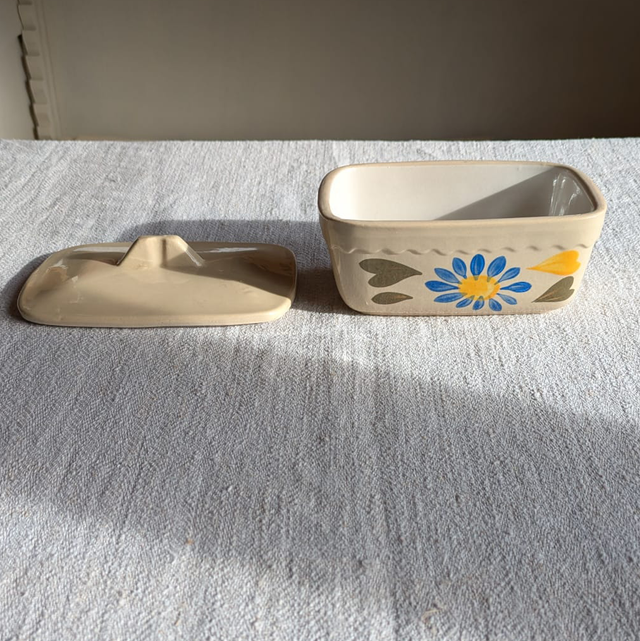 Beurrier vintage décoration peinte à la main, avec un couvercle.