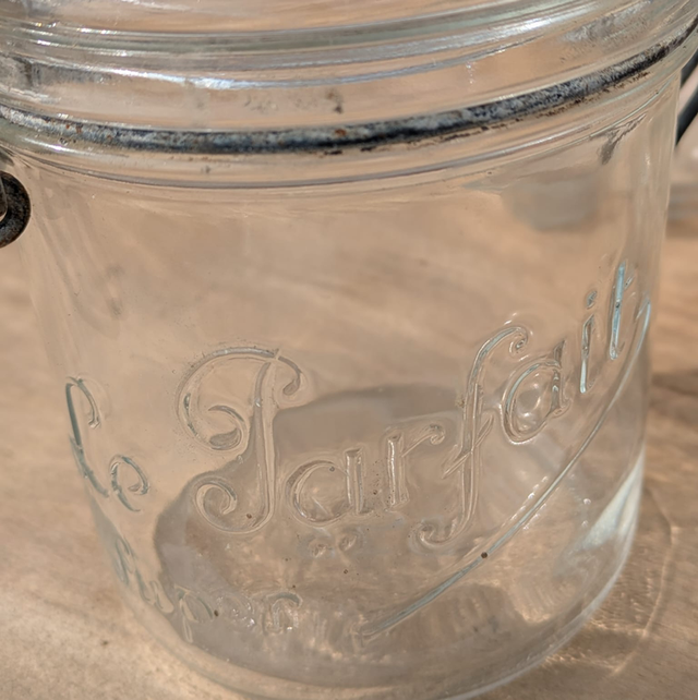 vieux bocal en verre « le parfait » très joli en deco dans une cuisine et pratique pour y mettre les aliments