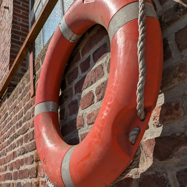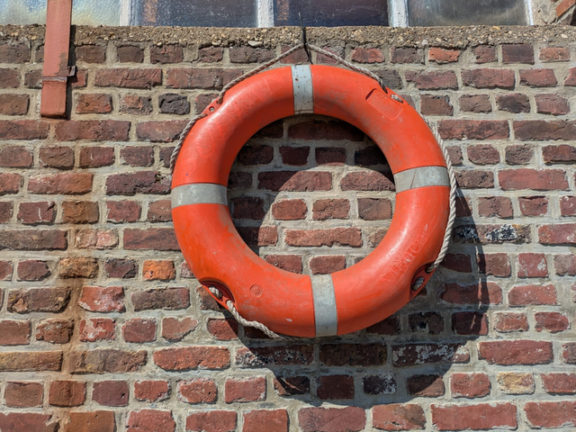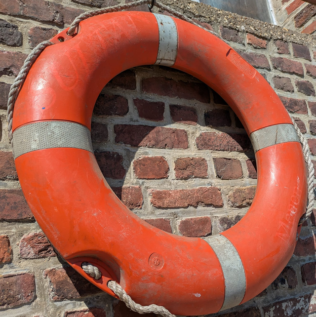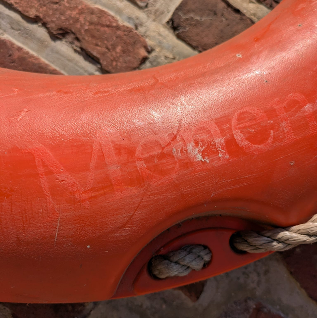 Bouée vintage en plastique orange provenant de la ville belge « Menen »