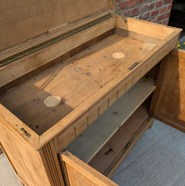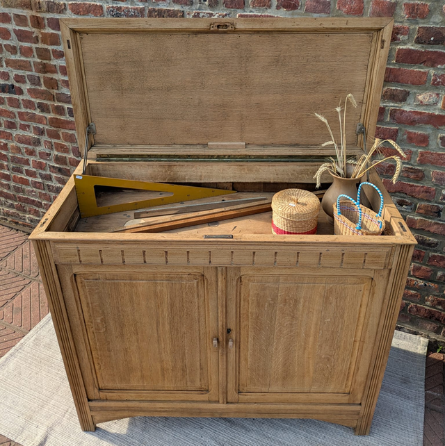 ce buffet a beaucoup de charme et d’originalité car il possède 2 portes où l’on peut ranger beaucoup de choses mais pas que! Vous pouvez découvrir la petite touche originale avec une ouverture sur le dessus permettant de cacher des trésors …