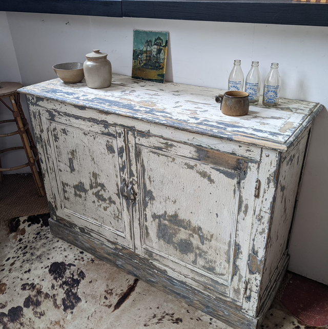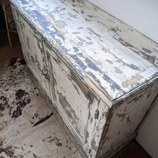 Magnifique meuble avec une très belle patine grise et blanche.