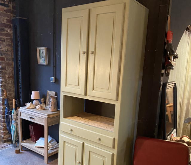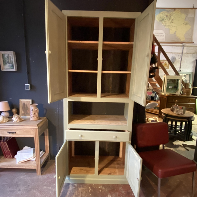Buffet haut, ce meuble à été entièrement restauré dans notre atelier, il possède plusieurs rangements pratique et notamment une niche pour y mettre un petit micro onde ou petit four si il est positionné dans une cuisine. Dans un séjour il peut contenir toute la vaisselle, dans une entrée tout les chapeaux bonnets et chaussures. Dans une salle de bain les serviettes et produits de beauté.