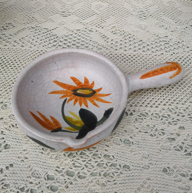 Petit caquelon Poterie du marais, des années 60/70 peut s’utiliser comme récipient pour des apéros ou autres; ou bien encore comme vide-poches sur la table basse ou meuble dans l’entrée.