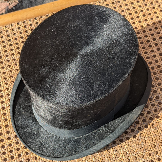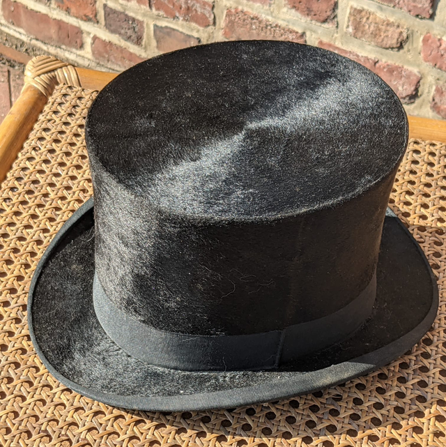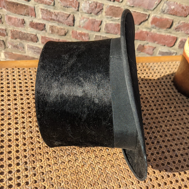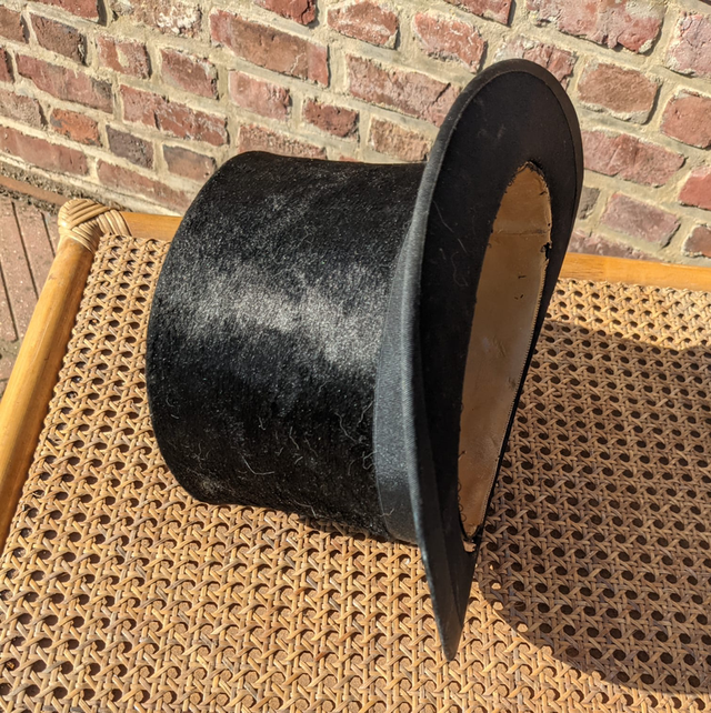 Très ancien Chapeau haut de forme noir des années 1900, autrefois porté par les nobles. Matière en feutre de castor.
