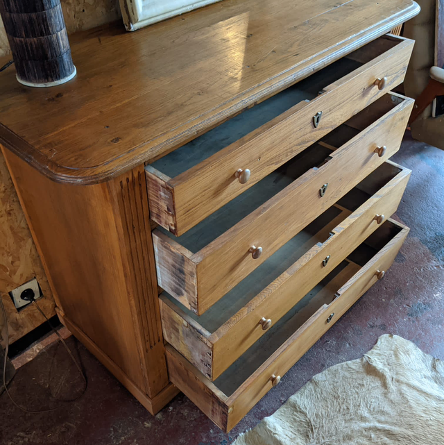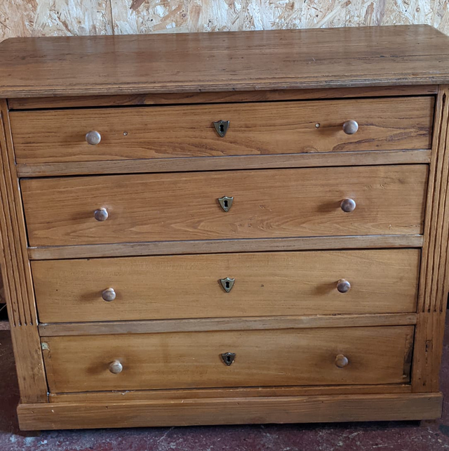 Commode des années 40 avec dessus en chêne qui confirme la solidité du meuble, Possédant 4 tiroirs.