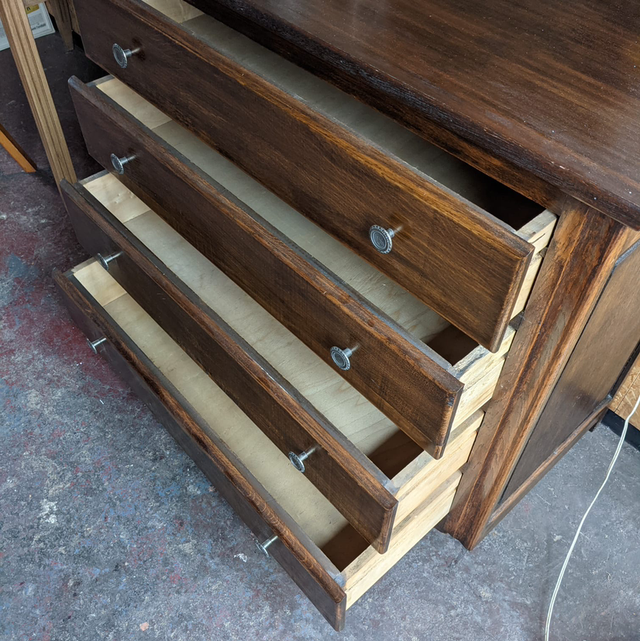 Commode vintage des années 30 en bois chêne et plaquage chêne