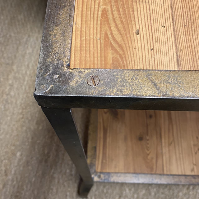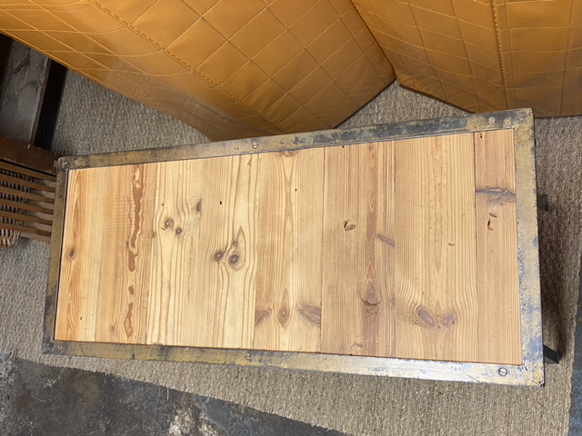Le piétement a été retravaillé et est entièrement en métal et nous avons ajouté des planche de bois sur mesure.