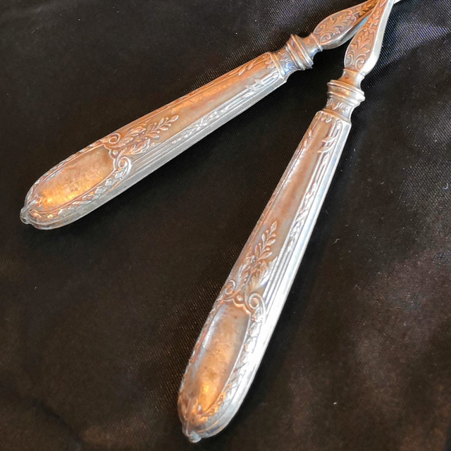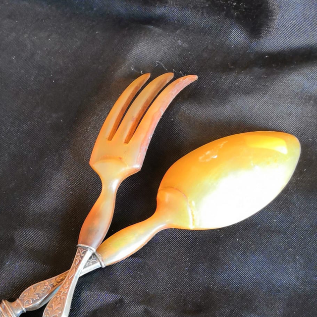 Couvert à salade en argent et en corne.