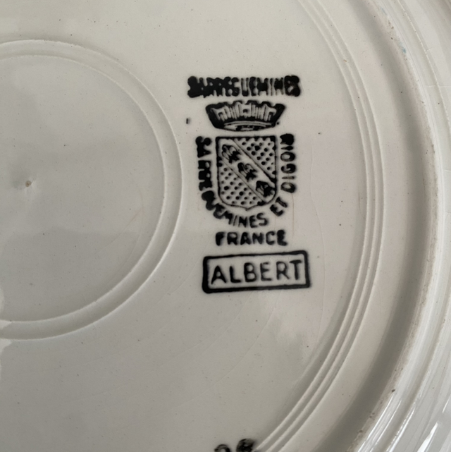 4 assiettes creuses et un plat ovale modèle Albert de la manufacture française Sarreguemines.