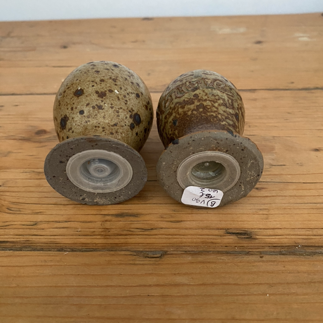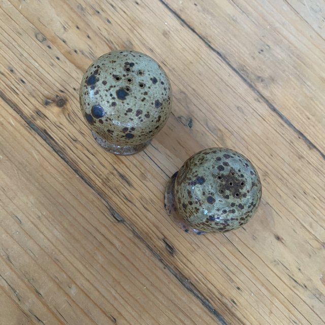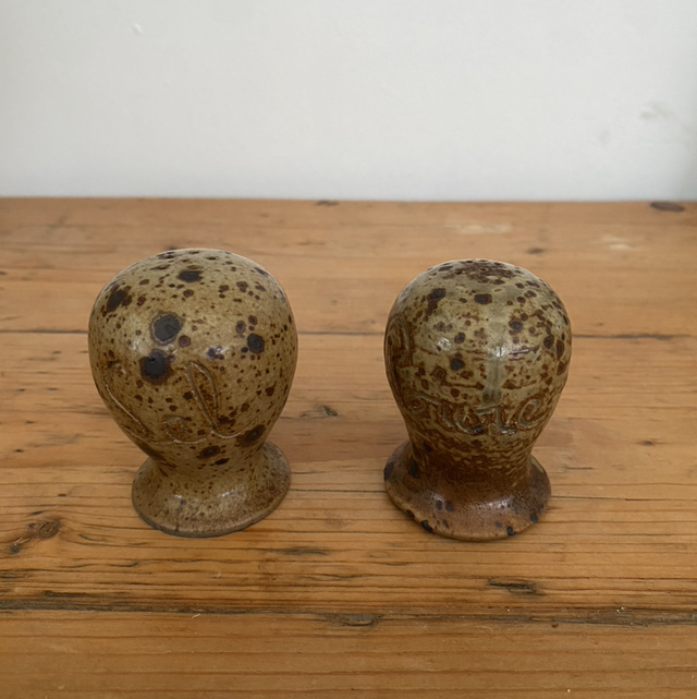 Petit poivrière et salière en grès, neutre et simple, en tant que décoration ils peuvent parfaitement s’intégrer à une belle déco de table.