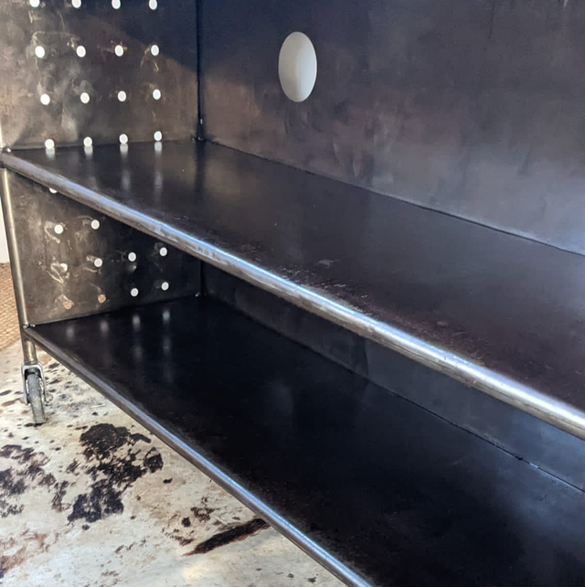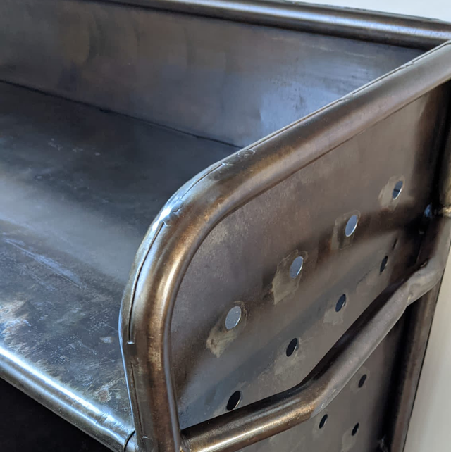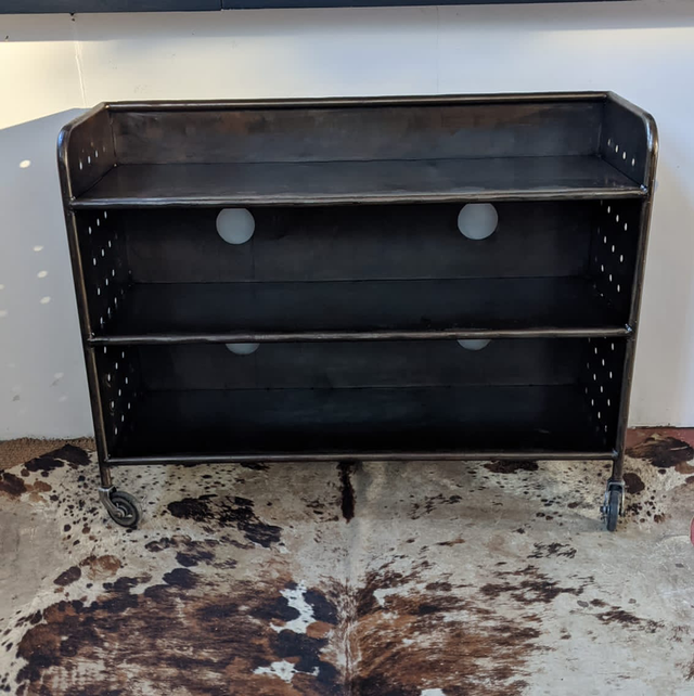Belle étagère ancienne en métal montée sur roulettes très pratique à déplacer sous forme de chariot.