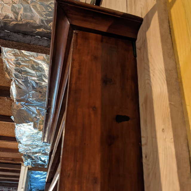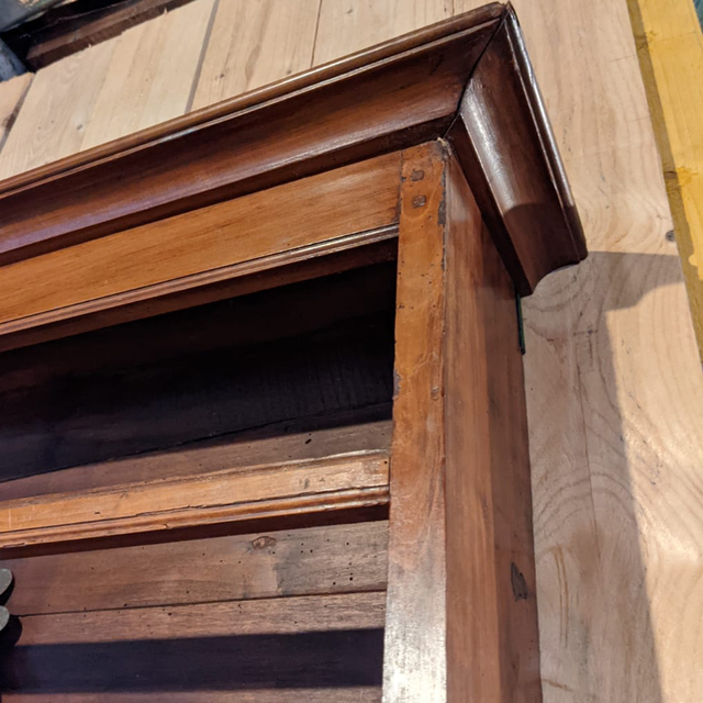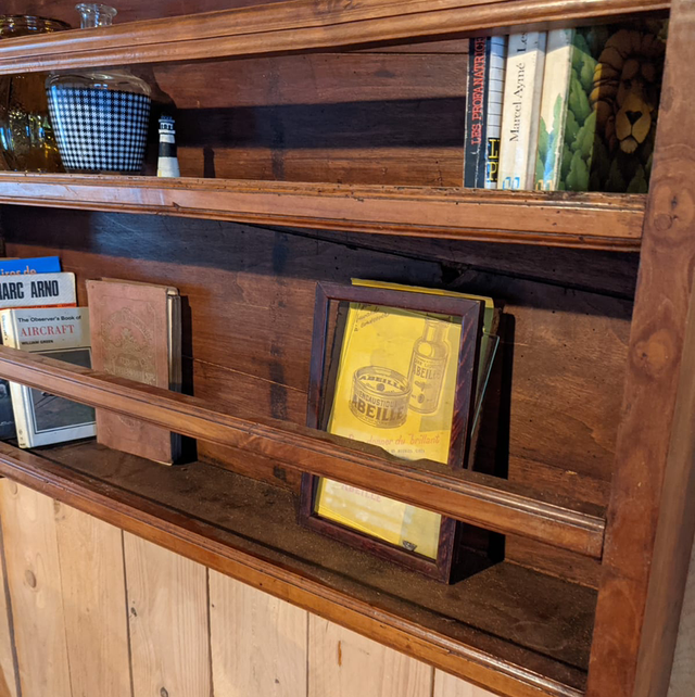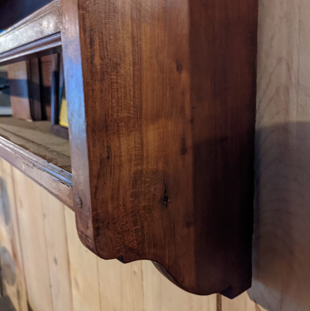 Étagère murale en bois, il s’agit en effet d’un haut de meuble d’un ancien vaisselier transformé en étagère que l’on peut accrocher au mur.