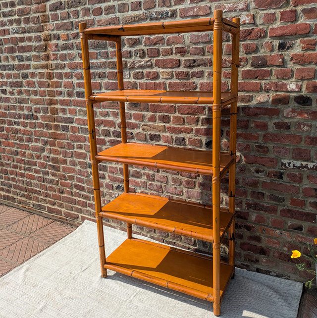 Dotée de cinq larges planches, elle offre une belle capacité de rangement et de présentation pour livres, plantes, objets décoratifs ou vaisselle. Sa structure en rotin assure stabilité et élégance, tout en conservant une grande légèreté visuelle.