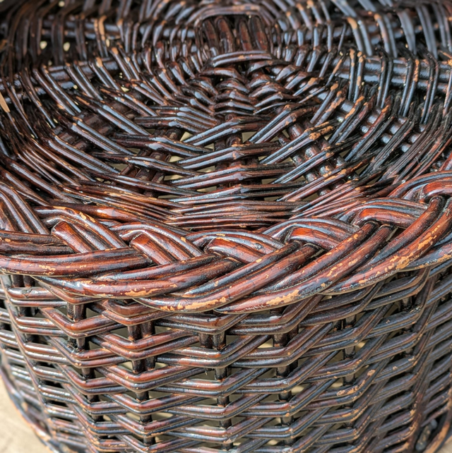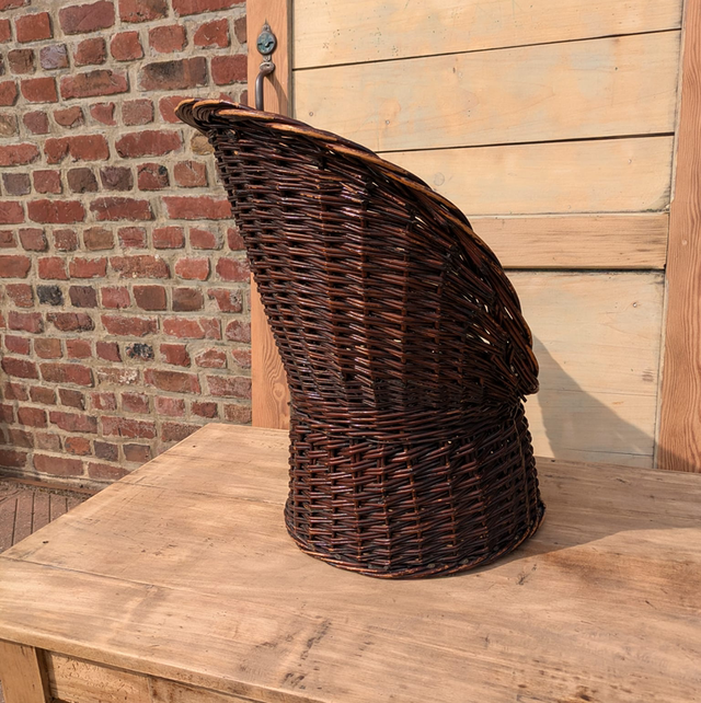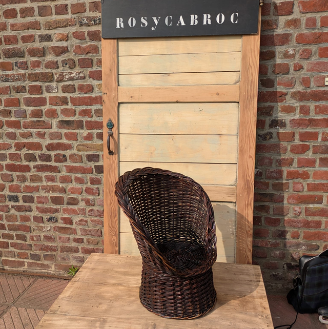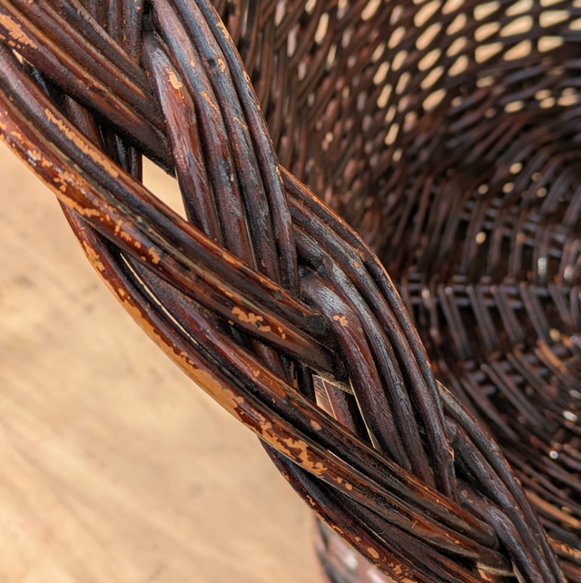 Ce fauteuil pour enfant vintage est en rotin tressé.