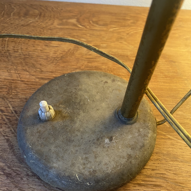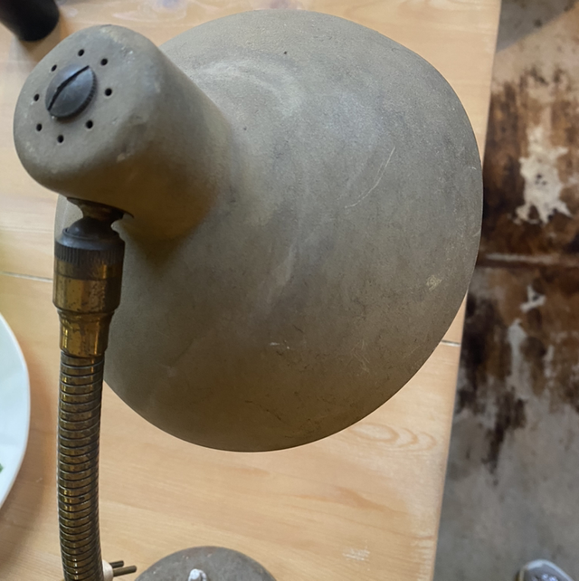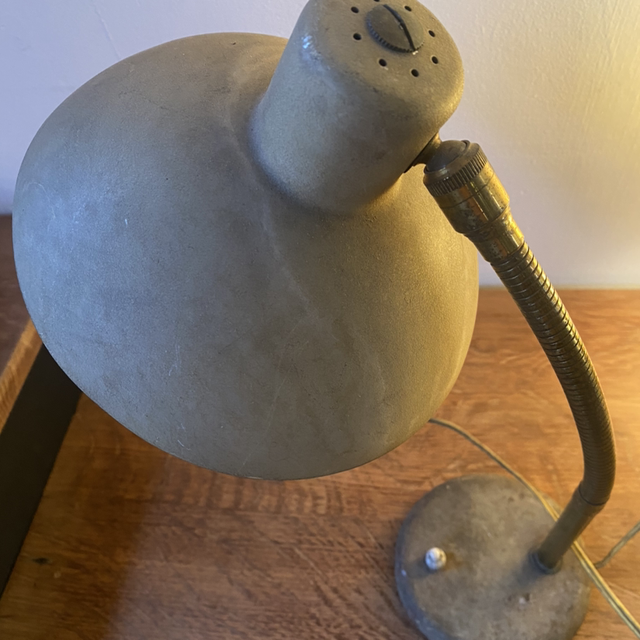 Mignonne petite lampe de bureau vintage dans les tons bronze doré.
