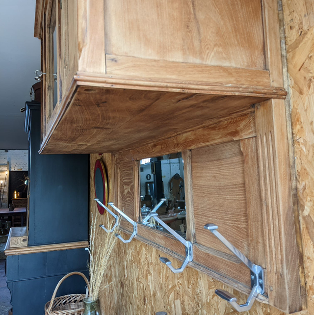 Très pratique dans une entrée, très deco et utile ce meuble offre le côté rangement et le côté design déco, il peut aussi se mettre dans une cuisine pour du rangement. Sa couleur neutre, son bois solide, il peut traverser encore plusieurs années sans bouger. Ses patères en aluminium idéales pour poser manteaux, tabliers ou autres éléments de cuisine utiles.