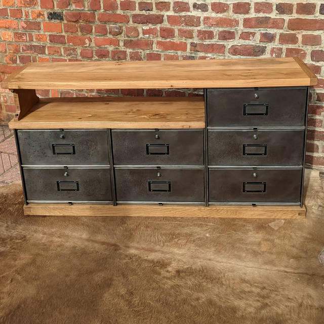 Ce meuble télé a été entièrement conçu et monté et assemblé de toutes pièces à la main, il est fabriqué entièrement avec des matériaux recyclés et anciens, chaque pièce de meubles a été retravaillée et assemblée minutieusement, ce meuble est un modèle unique, et de surcroît solide, la planche de bois dessus et le cerclage pour le pied sont très épaisses, solides et qualitatives.