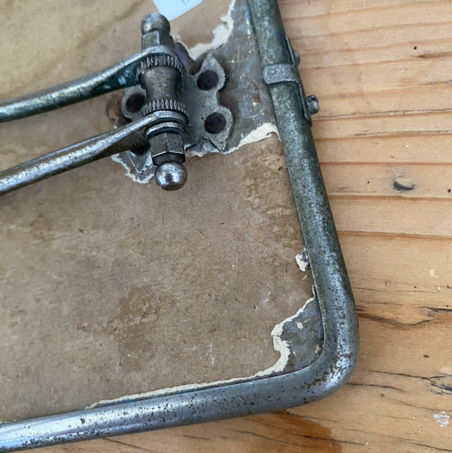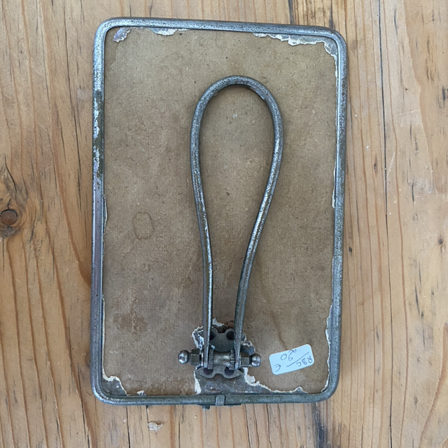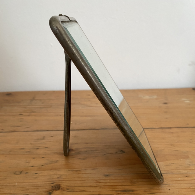 Très vieux petit miroir barbier à poser, derrière cartonné.