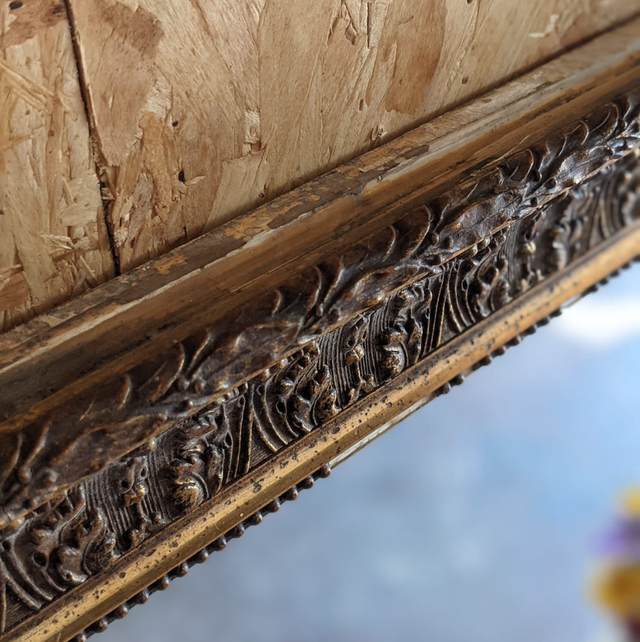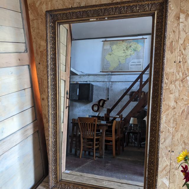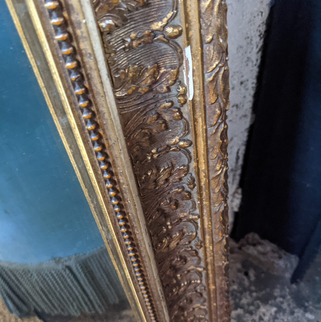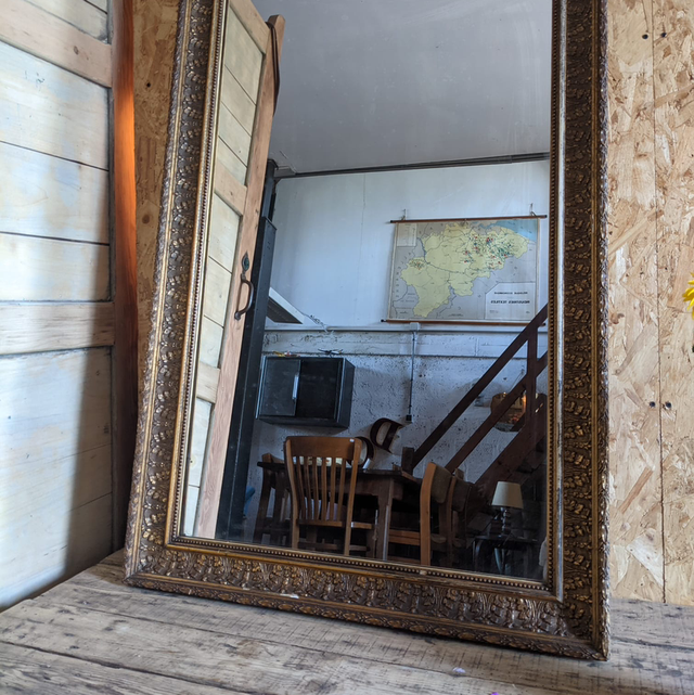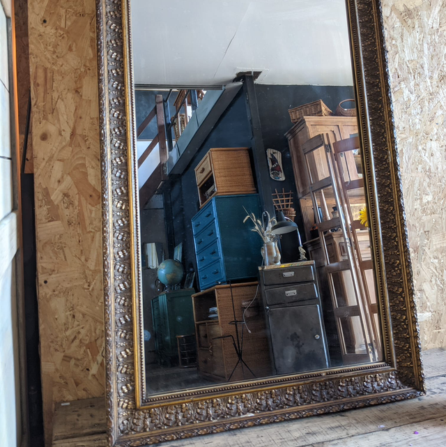 Grand miroir trumeau début 20eme siècle cadre en stuck doré.