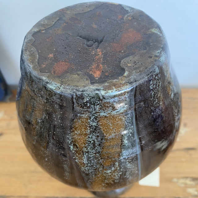 Très belle poterie en forme de pichet avec de magnifiques nuances de couleurs.