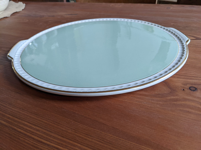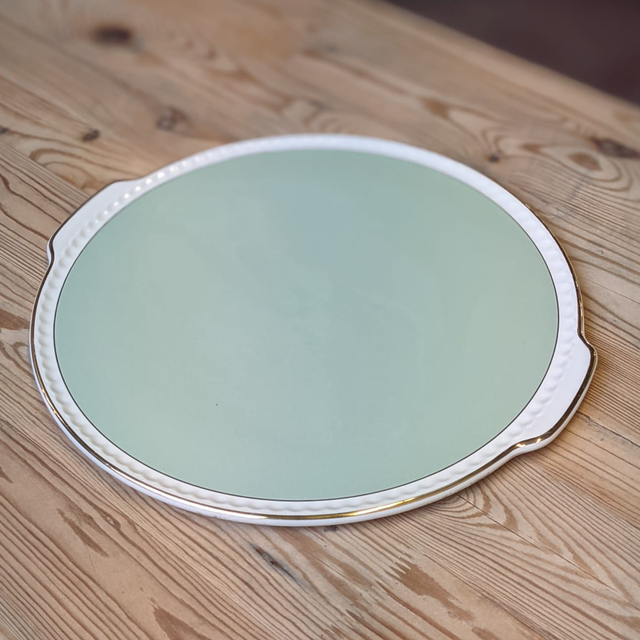 Très joli plat à tarte ou à gâteau de la manufacture VILLEROY ET BOCH vert amande avec un liseré doré. De très belles proportions pour ce plat pour une belle présentation de vos tartes ou de vos gâteaux.
