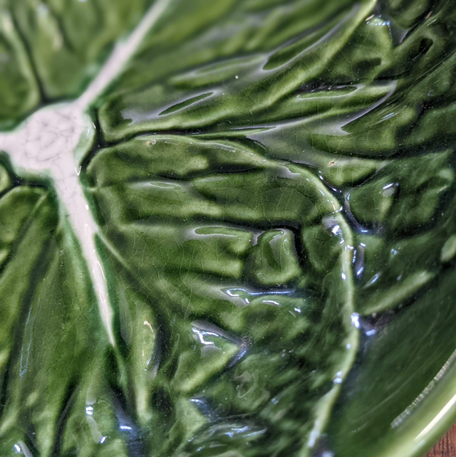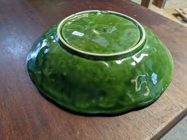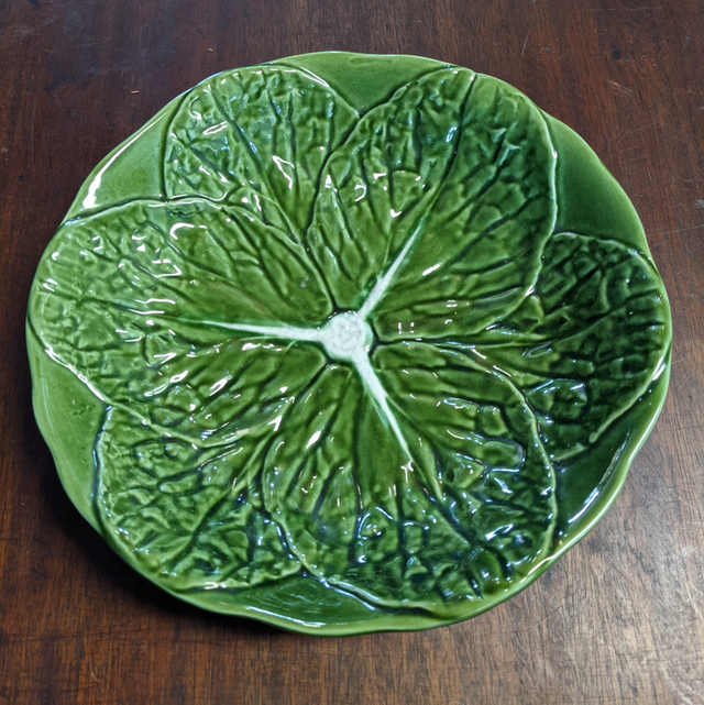 Grand plat feuille de chou vert. C’est de la vaisselle portugaise, idéal pour servir un repas pour arborer une belle table également.