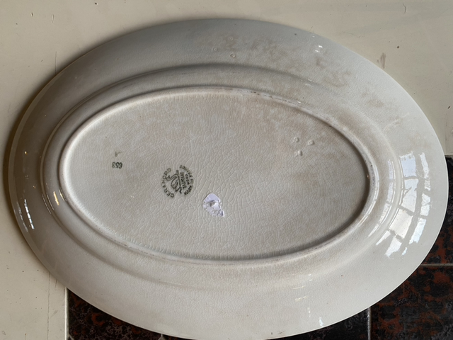 Ancien Plat ovale avec des fleurs orange et violettes de la marque Ceranord de la manufacture de saint Amand. Ce plat a vécu mais il est chargé d’histoire et peut arborer une table pour les fêtes ou un simple repas. Très pratique pour y présenter un plat concocté ou servir et présenter des toasts.