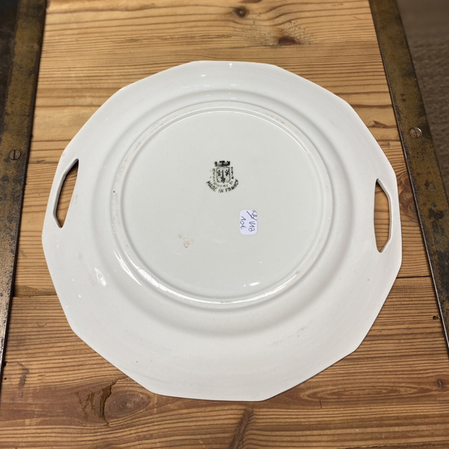 Ancien Plat rond avec 2 anses. Provient de la manufacture française l’Amandinoise de Saint Amand. Ce plat vintage est utilisé comme plateau à fromage mais peut aussi être utilisé pour tout autre plat.