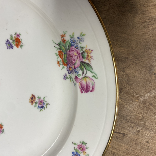 Lot d’assiettes vintage fleuries contour turquoise