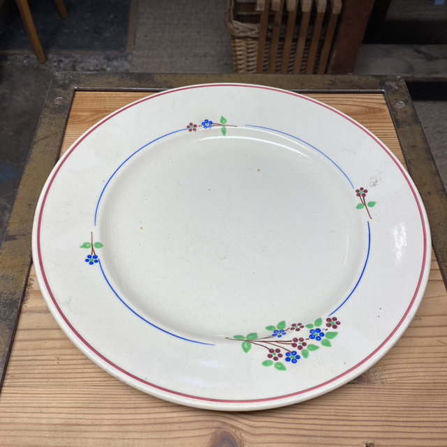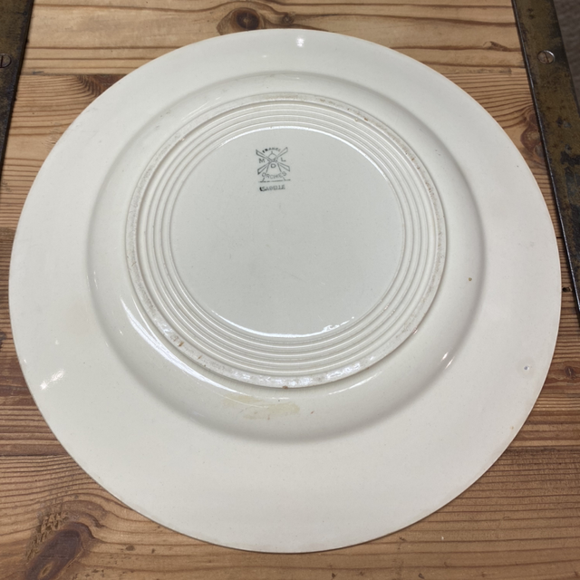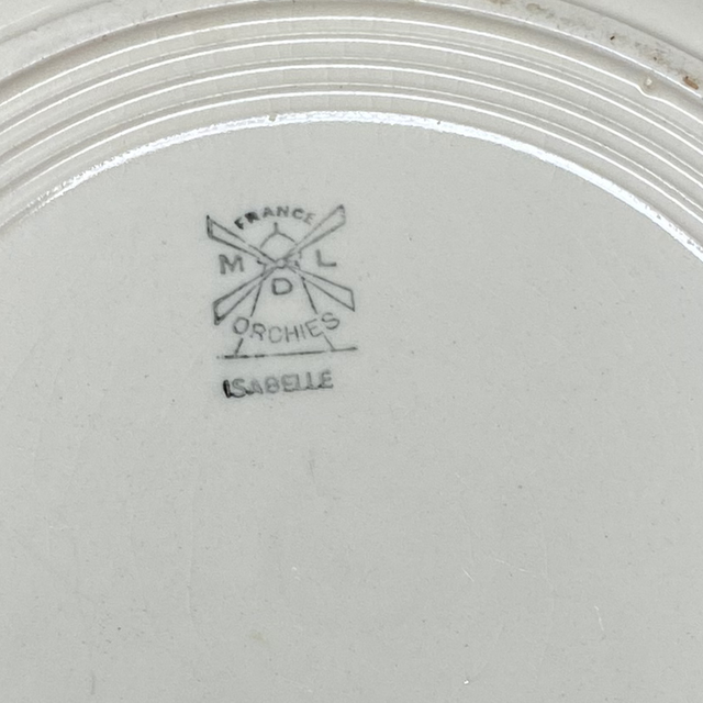 Ancien plat rond plat modèle Isabelle de la manufacture française moulin des loups Orchies. Ce plat est idéal pour servir de bons repas ou peut aussi servir de grande assiette ou plateau à fromages.