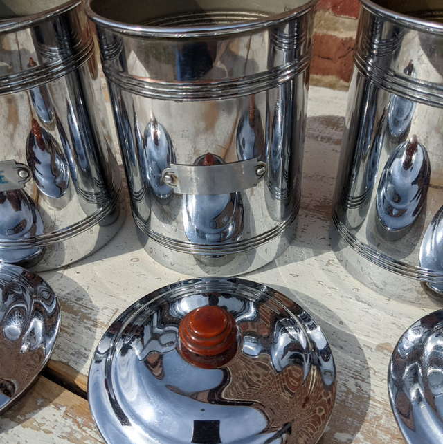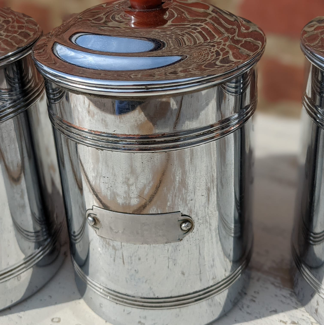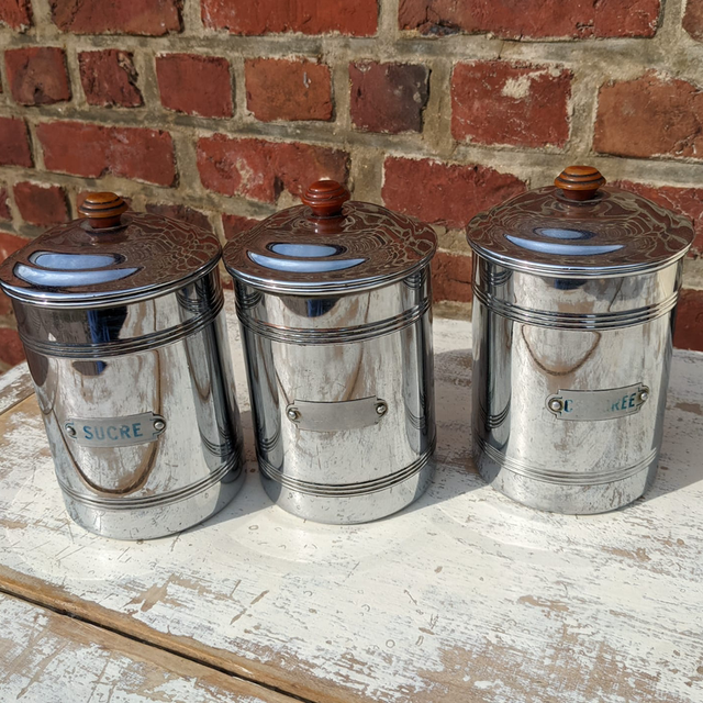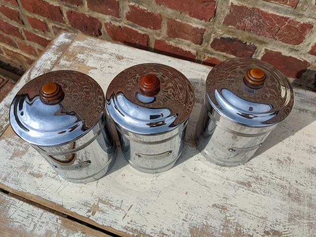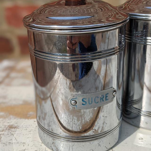 Lots de petits pots de cuisine en métal en très bon état datant des années 50