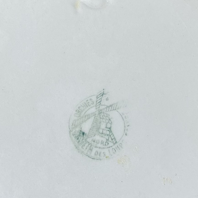 Grand plat creux de la manufacture Moulins des loups d’orchies. Orné de fleurs bordeaux. C’est un grand contenant et peut permettre de mettre tout type de plat mijoté afin de servir une belle tablée, mais peut aussi servir de corbeille de fruits au centre d’une table.