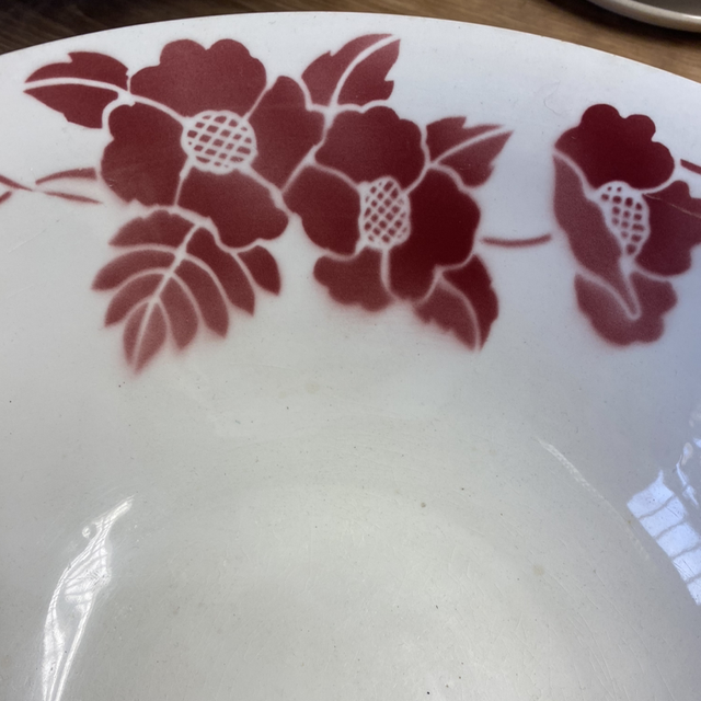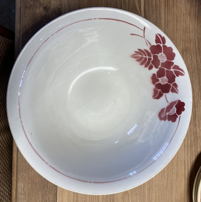 Saladier creux fleurs bordeaux