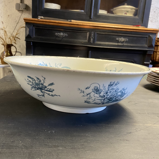 Orné de dessins dans les tons bleu. Ce plat est idéal pour contenir des plats mijotés sur une belle tablée mais aussi idéal pour servir de corbeille de fruits au centre d’une table.
