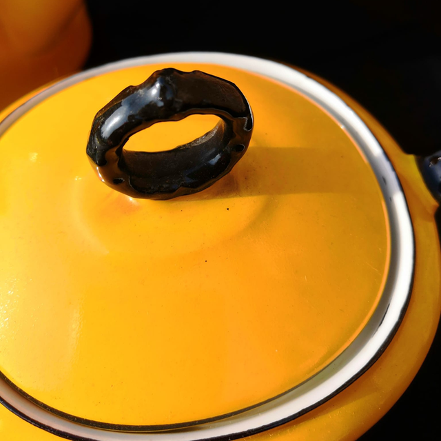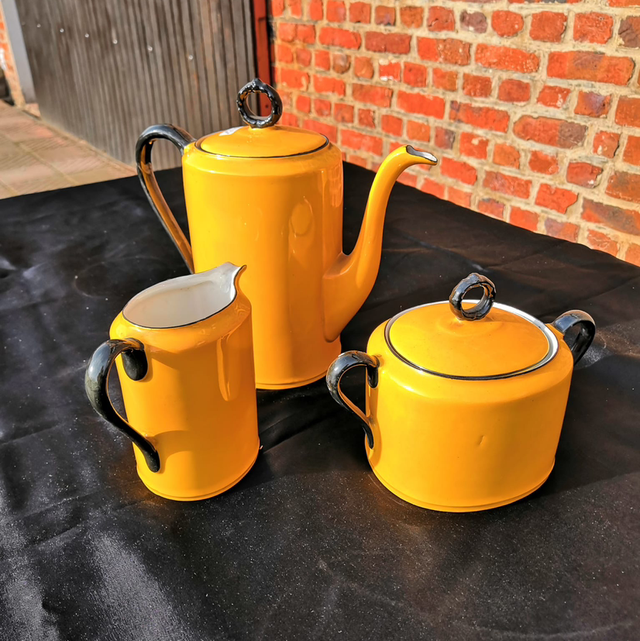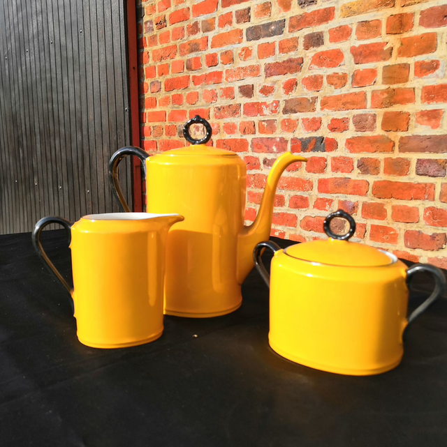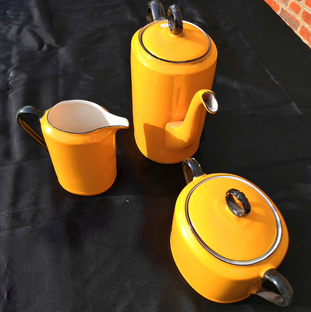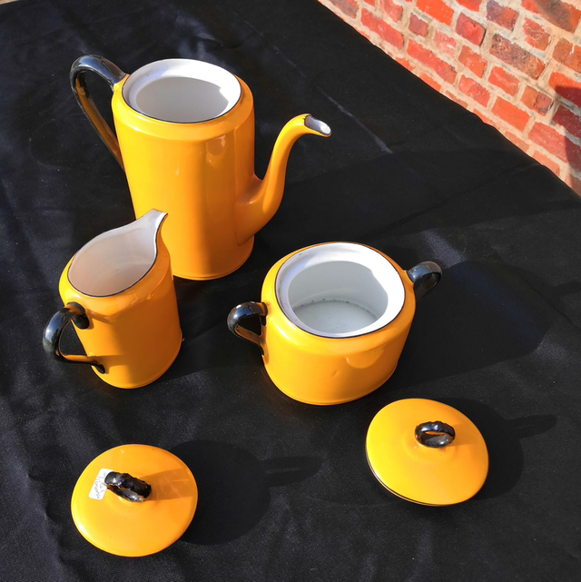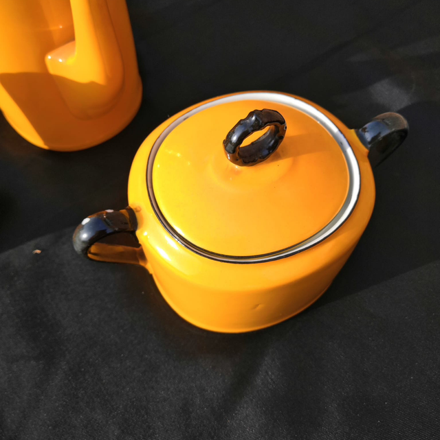 Petit service en faïence jaune avec la théière le sucrier et petit pot à lait