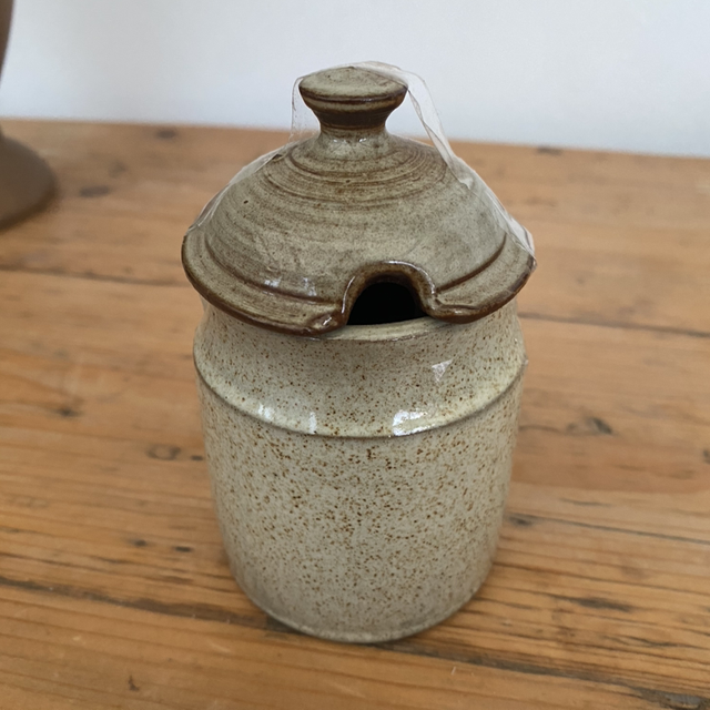 Petit sucrier en grès avec couvercle.