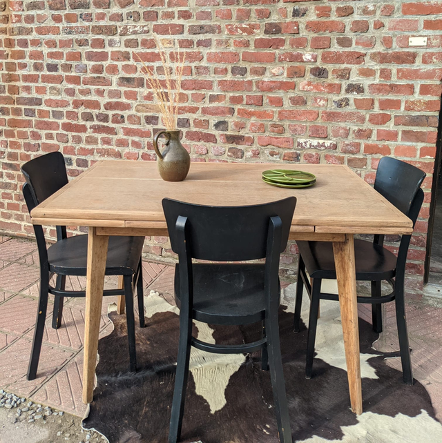 Table de repas vintage style scandinave des années 50 pieds compas.