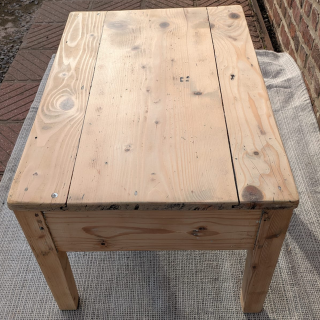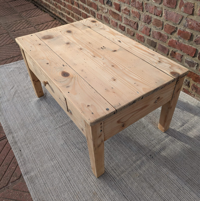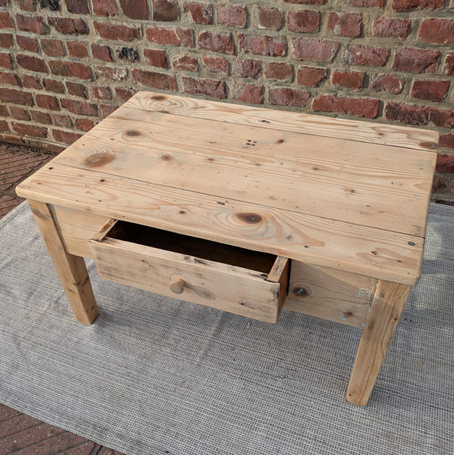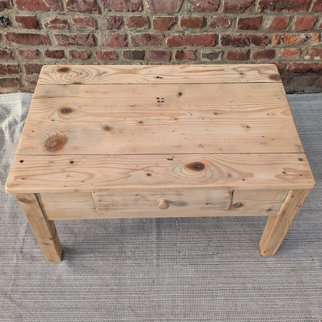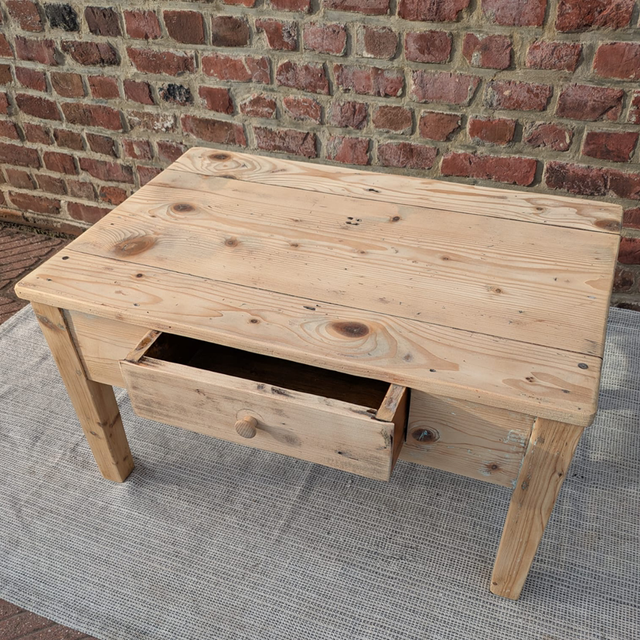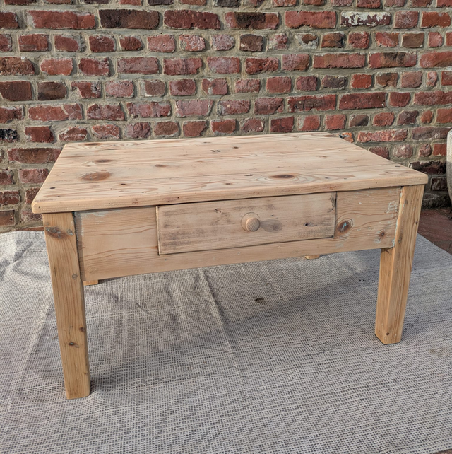 Joli petit modèle de table basse en sapin avec un large bandeau et un tiroir idéal pour tout rangement,