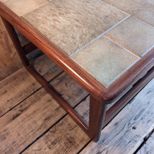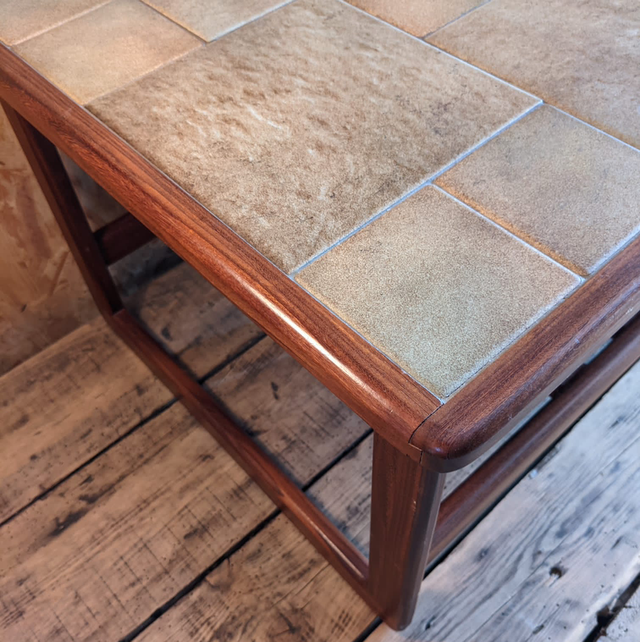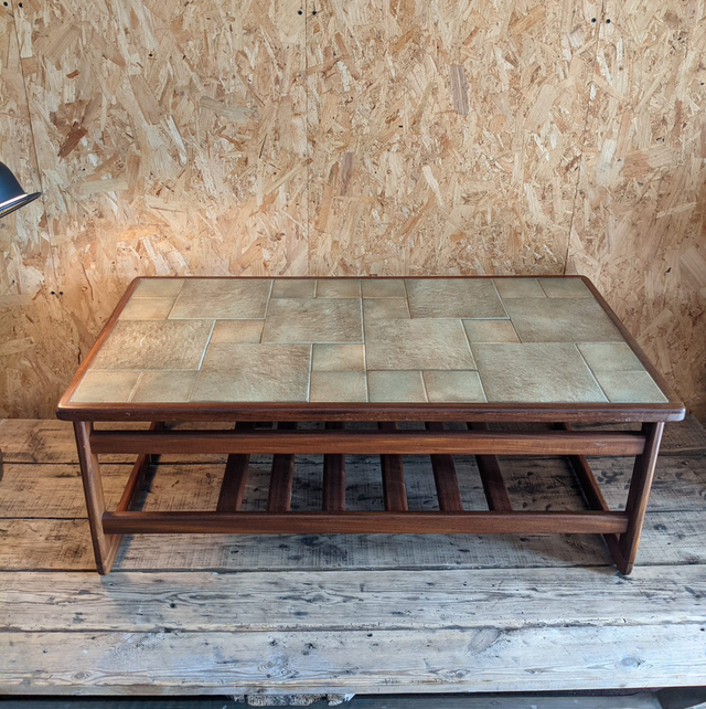 Table basse scandinave en carrelage beige et bois foncé