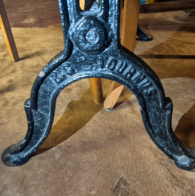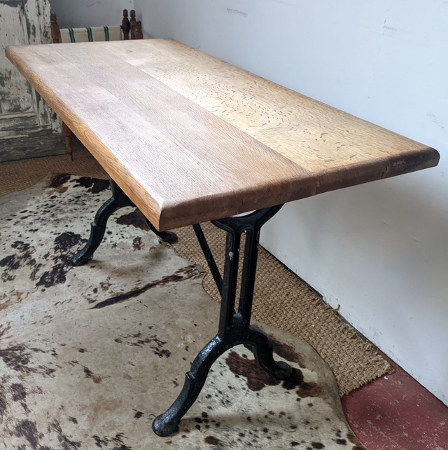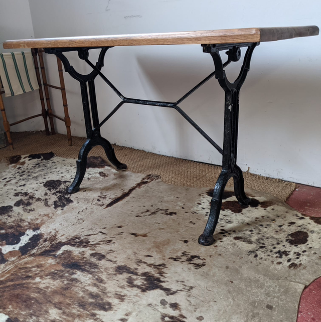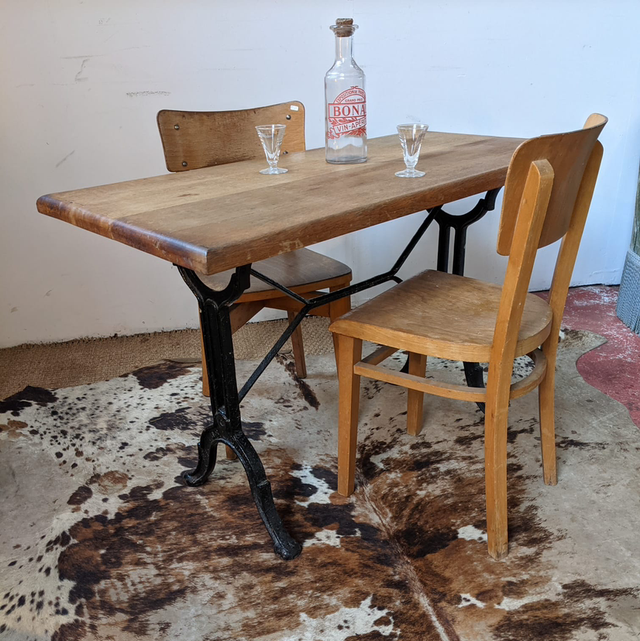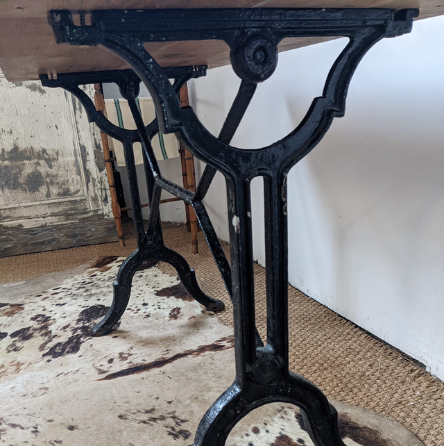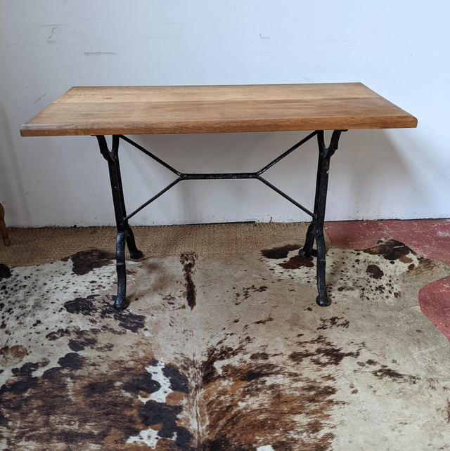 Jolie petite table bistrot plateau en chêne et pied en fonte noir.