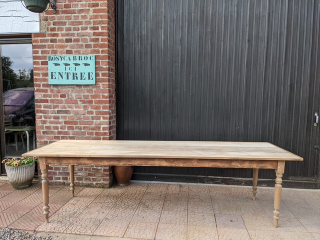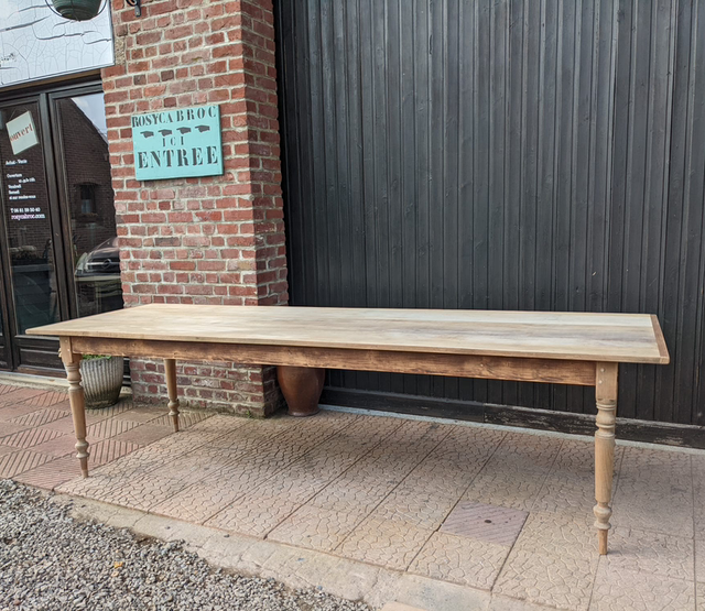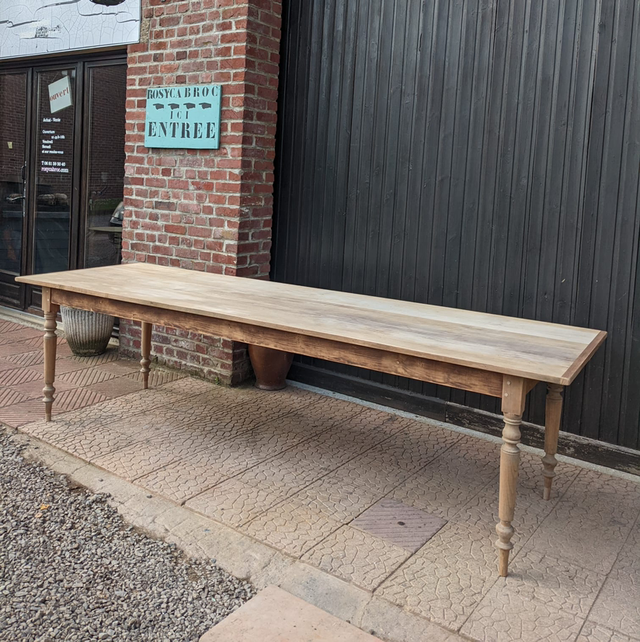 Longue table avec pieds tournés.