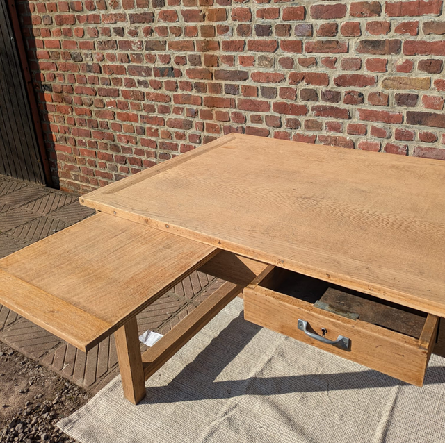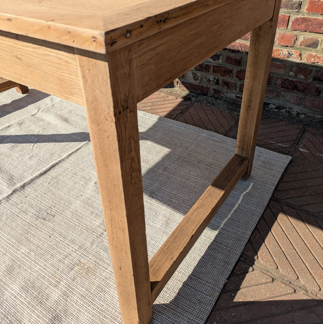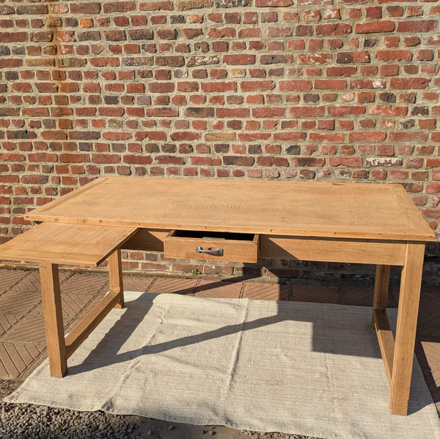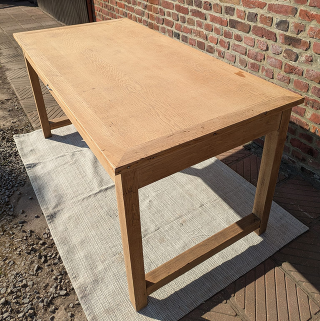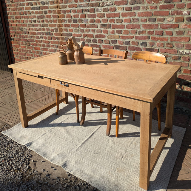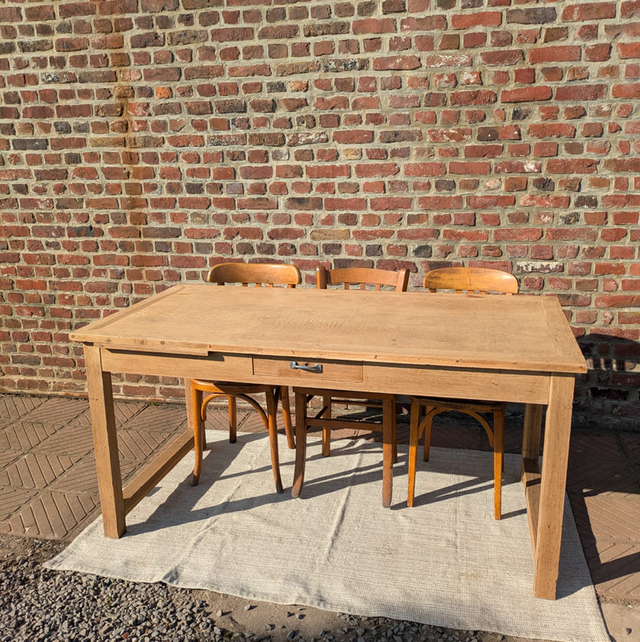 Très belle table en chêne blond avec des pieds droits.
