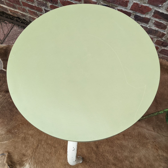 Petite table d’appoint ronde – Formica vert et pied métal patiné