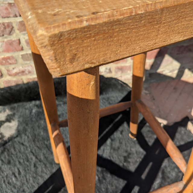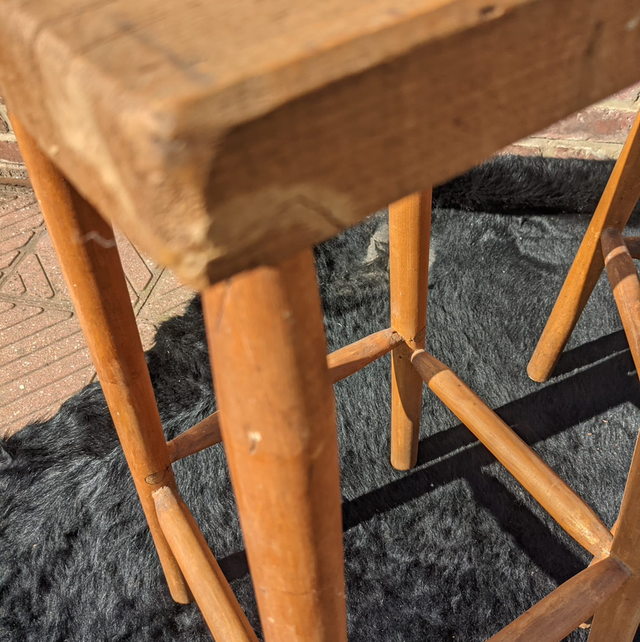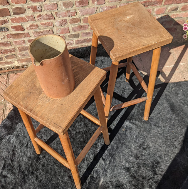 Lot de 2 tabourets de bar en bois très vintage, assise carrée.