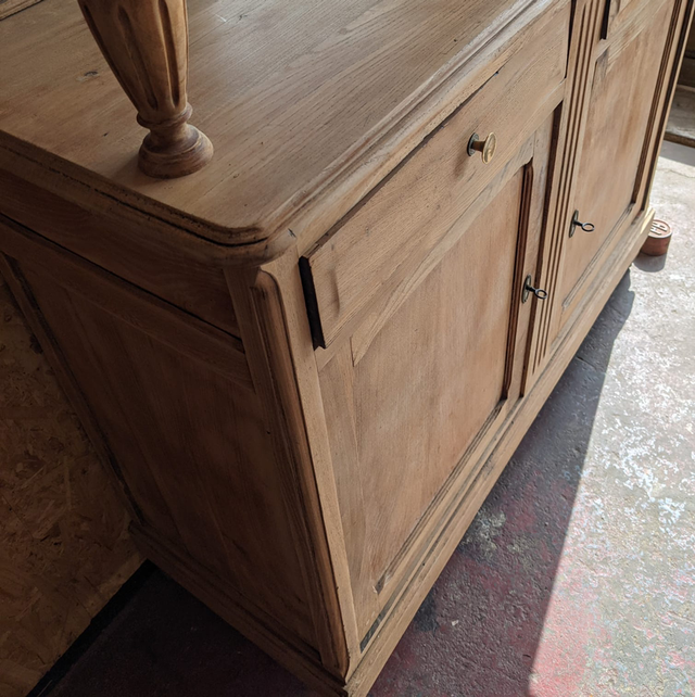 Ce meuble a été poncé et retravaillé avec de lui donner cette belle couleur bois neutre qui peut se fondre dans n’importe quel intérieur n’importe quel décor.