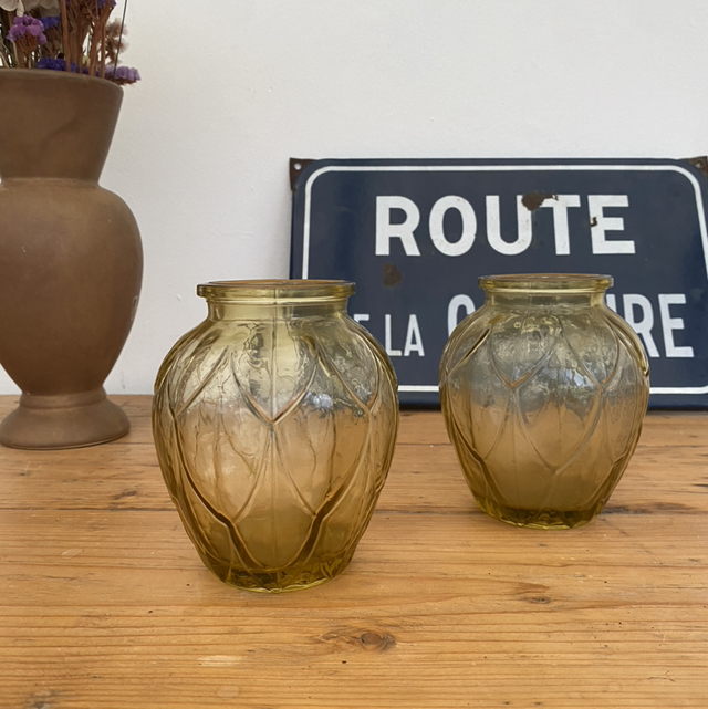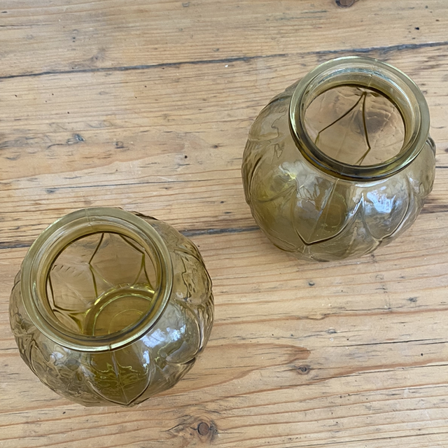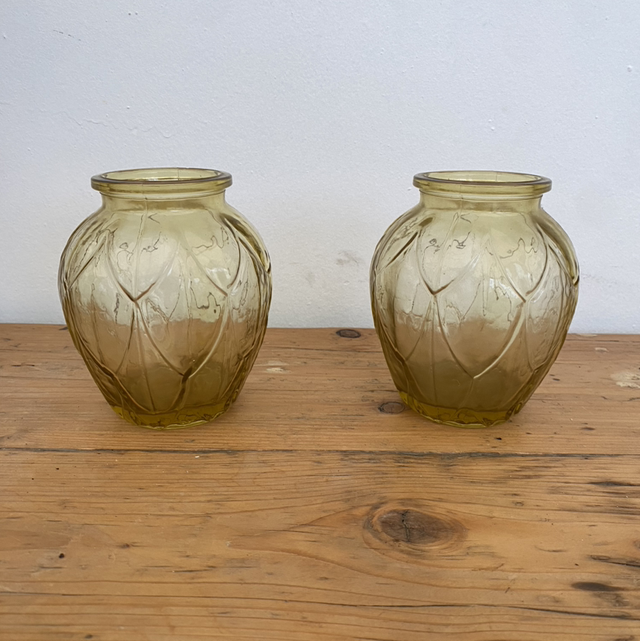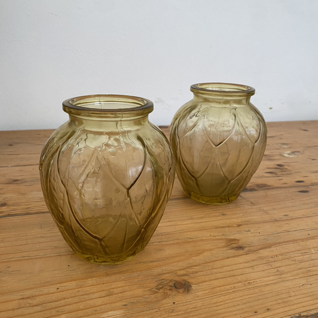 Petit vase à jacinthe en verre jaune vintage (vendu à l’unité)
