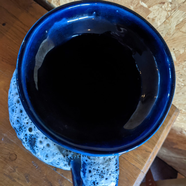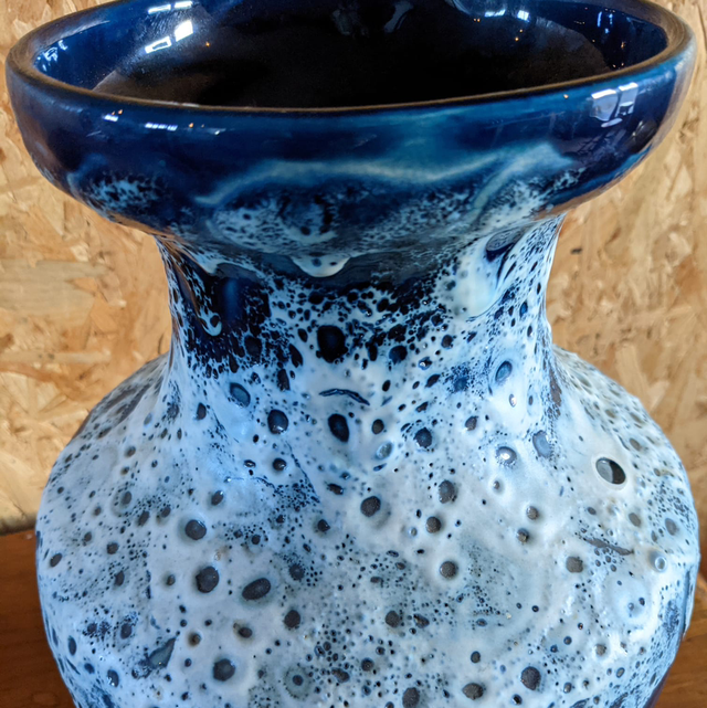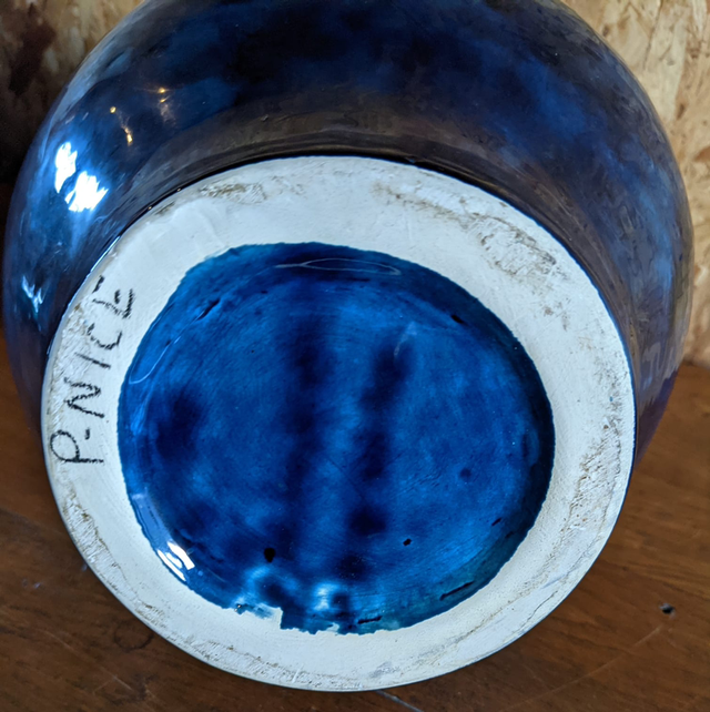 Très beau vase en forme de pichet avec une anse dans les tons bleus.