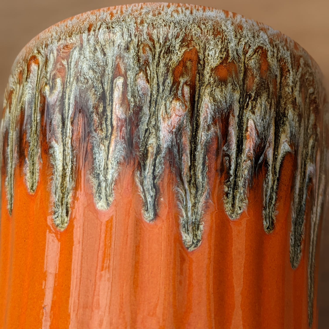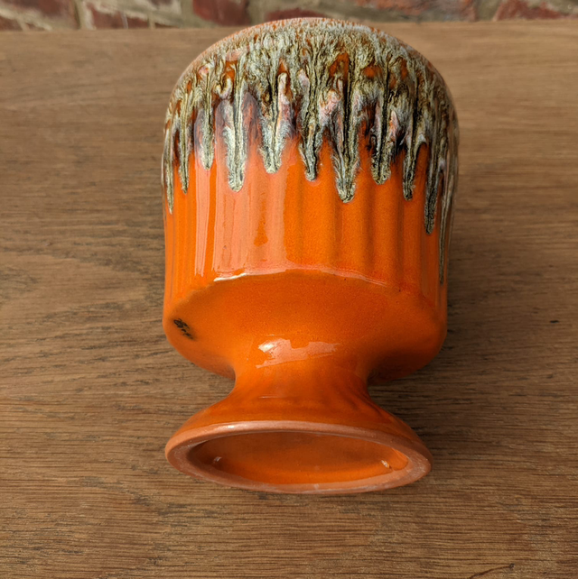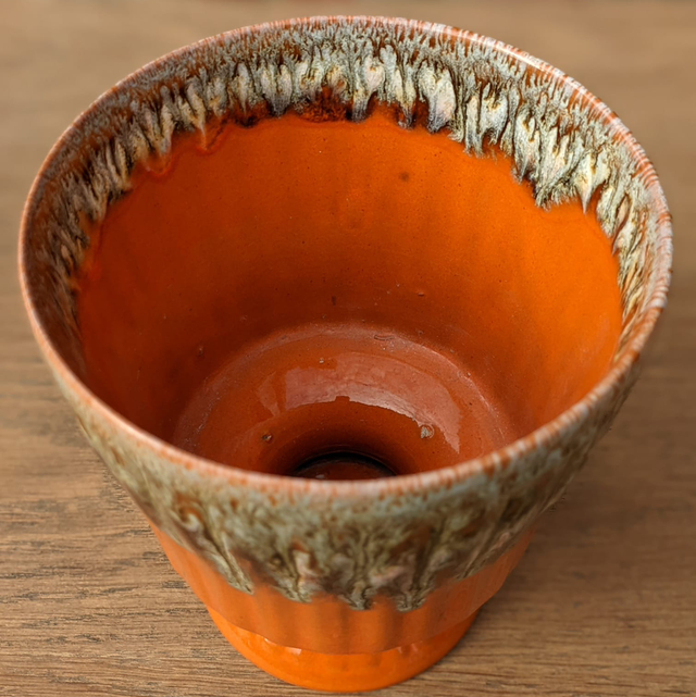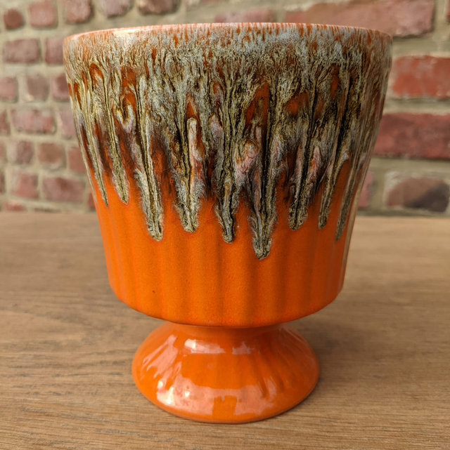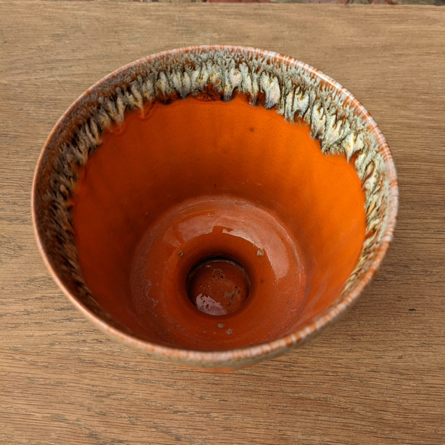Vase en forme de coupe en céramique. Son design ressemble à Vallauris. Sa couleur orange est une couleur phare des années 70.