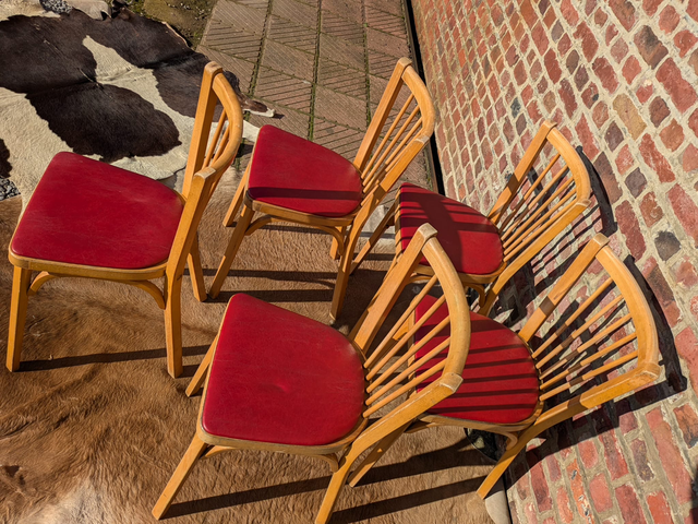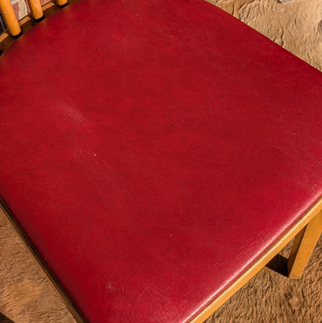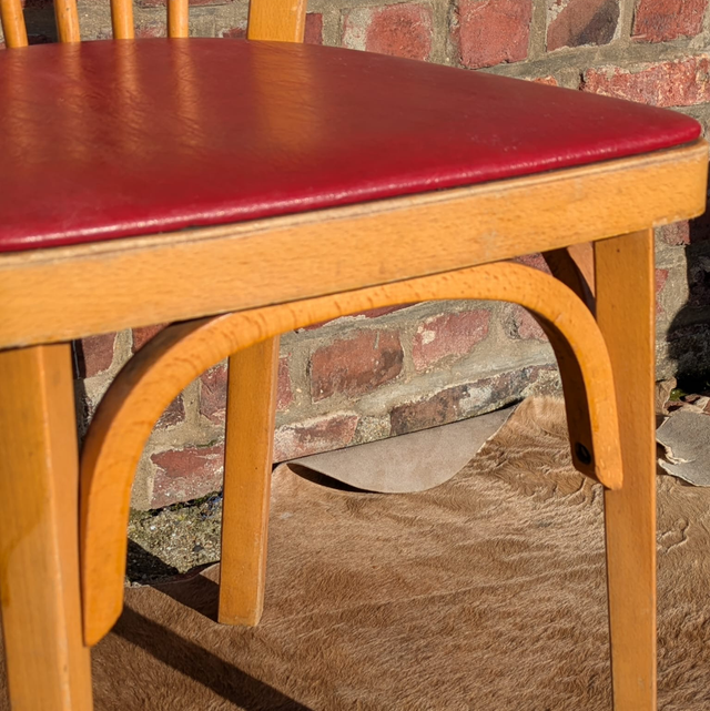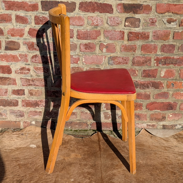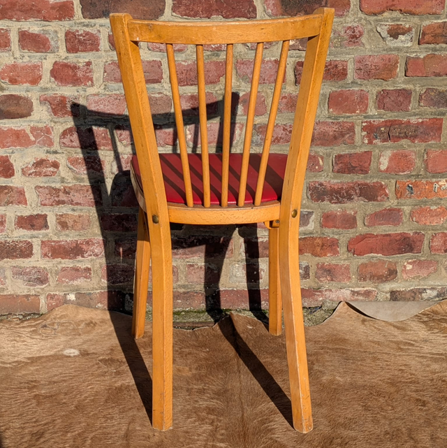 Chaise vintage en bois avec assise rouge – style bistrot rétro (vendue à l’unité)