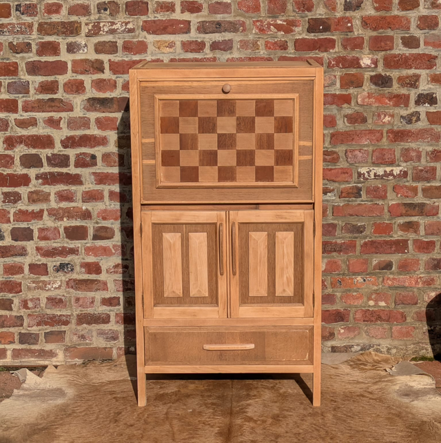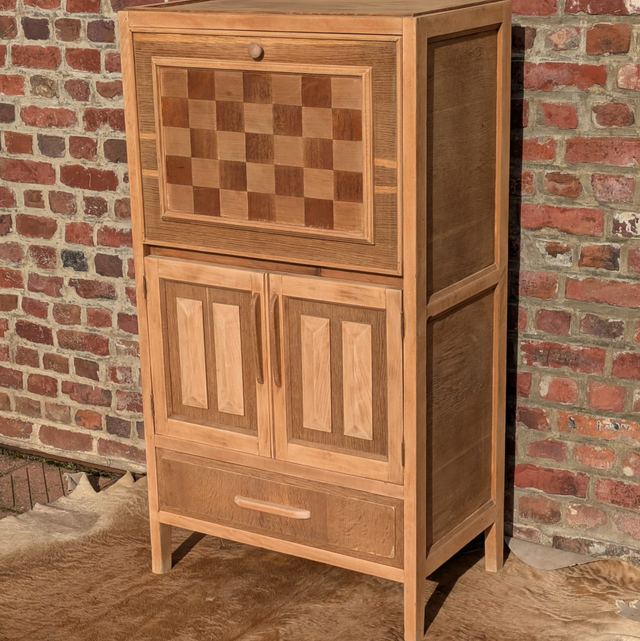 Meuble bar en bois massif avec plateau damier – style artisanal